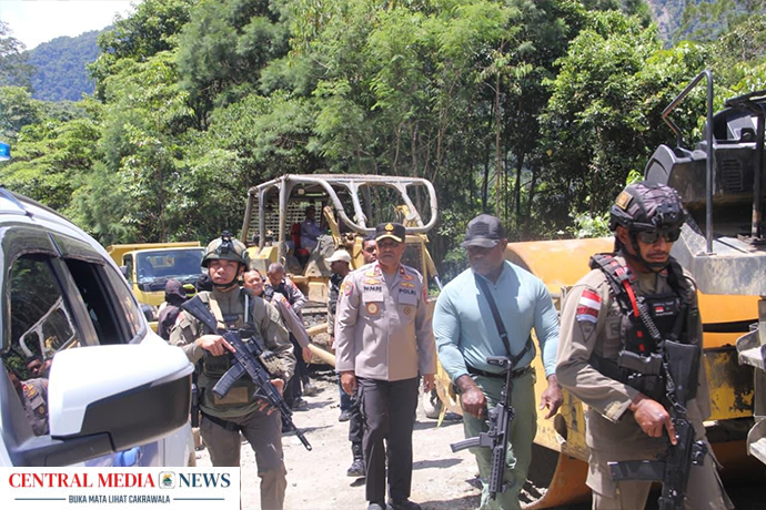 NABIRE – enagonews- Kepala Kepolisian Daerah (Kapolda) Papua Tengah (Papteng), Brigjen Pol Alfred Papare, memberikan atensi dengan turun langsung meninjau lokasi longsor dan perbaikan jalan, di KM 139 Provinsi Papua Tengah, Sabtu (06/09/2025).