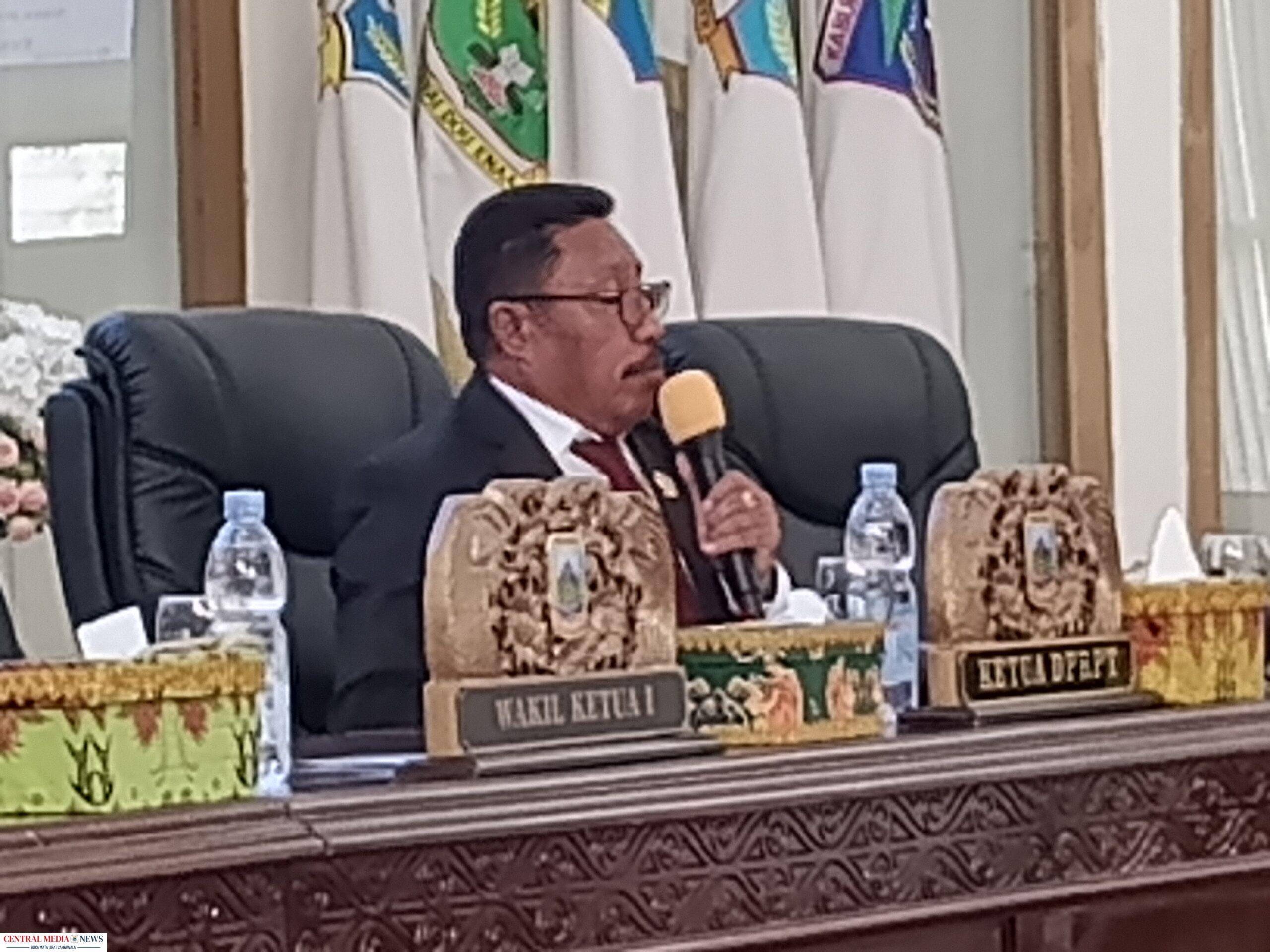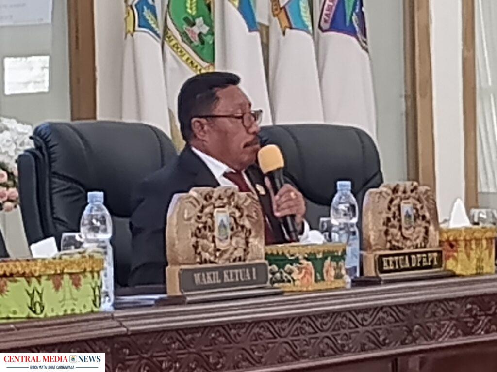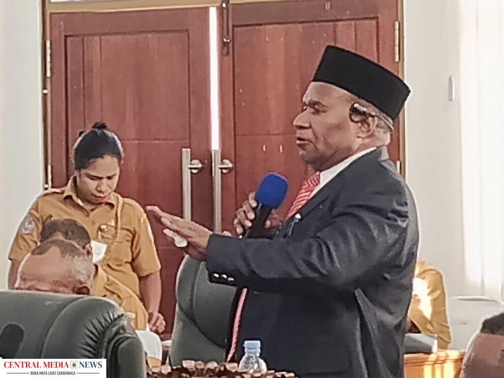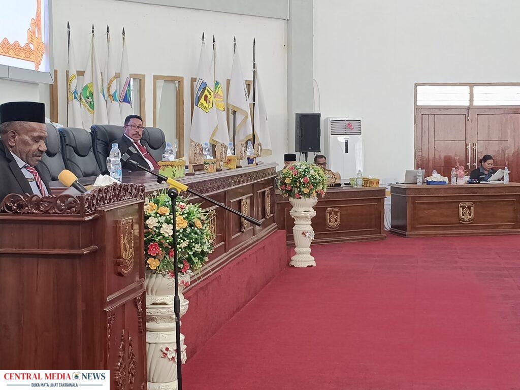Asisten III Bidang Administrasi umum, Viktor fun Saat membacakan sambutan gubernur Papua Tengah. (Dok. Nabireterkini)