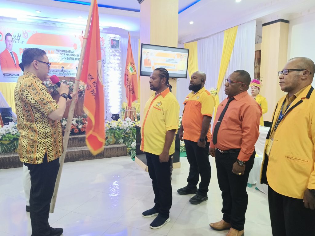 Pelantikan ditandai dengan penyerahan Pataka berupa Bendera Kosgoro 1957 dari Ketum PPK Kosgoro 1957 Dr.Dave Akbar Laksono kepada Ketum PDK Kosgoro 1957 Papua Tengah Kristover Mara, Amd.Tek.